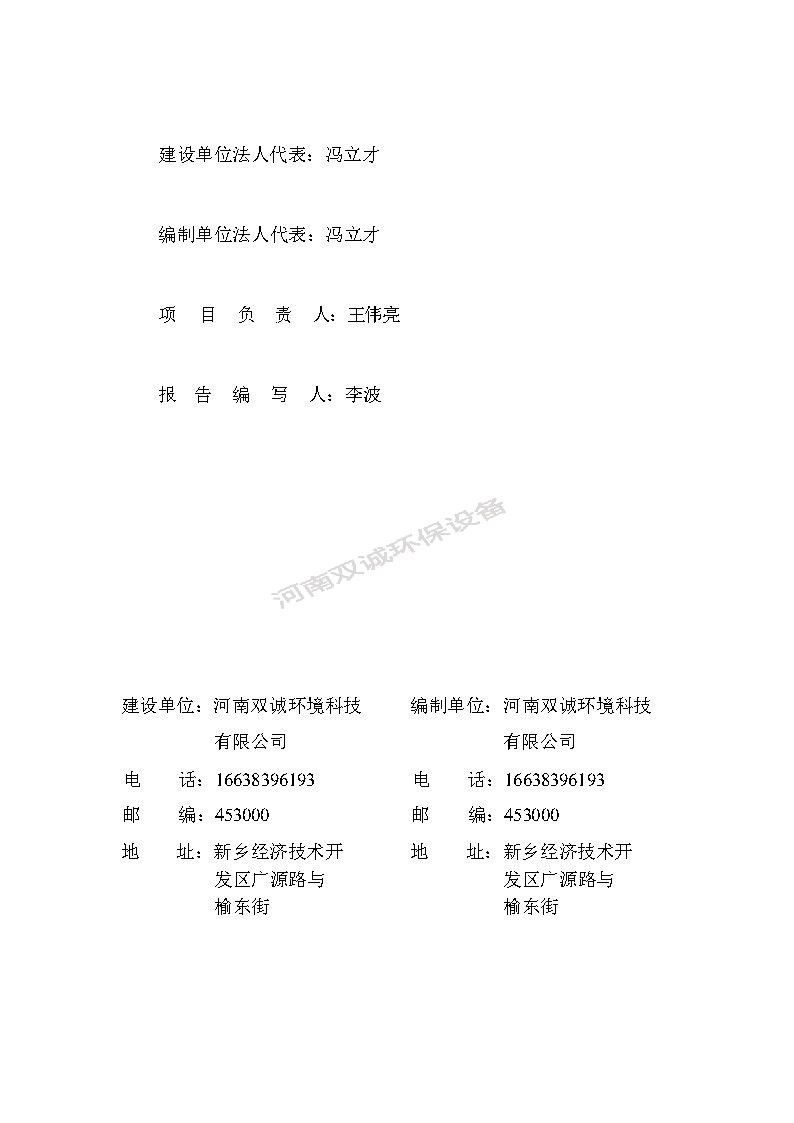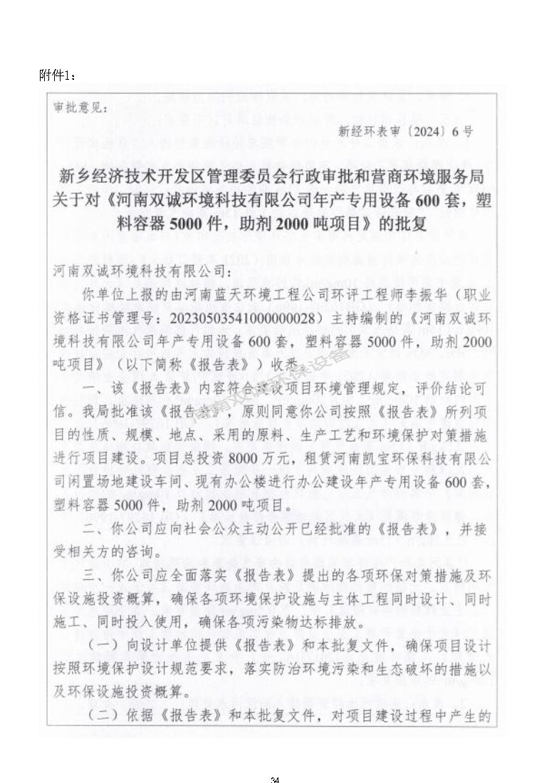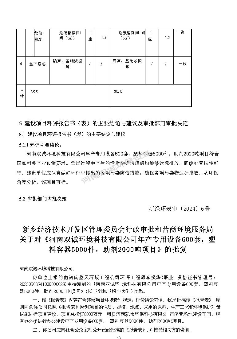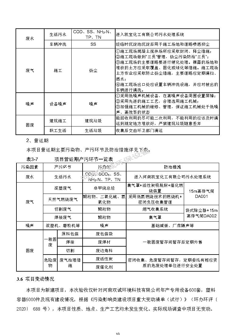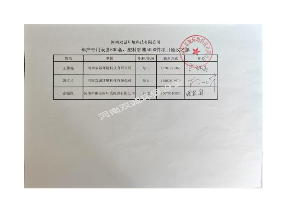 河南雙誠環(huán)境科技有限公司 年產(chǎn)專用設(shè)備600套,塑料容器5000件項目竣工環(huán)境保護 驗收監(jiān)測報告